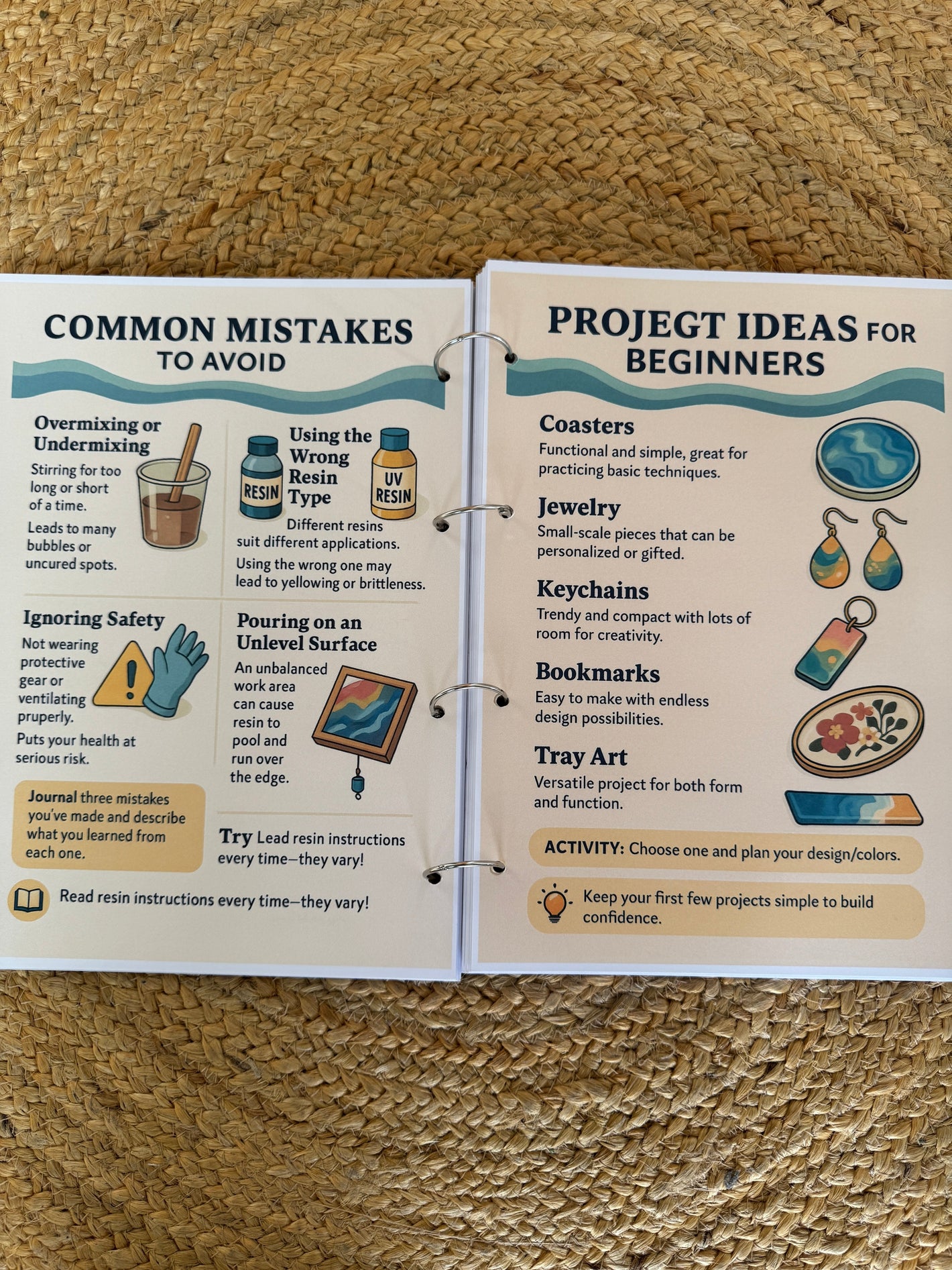 Turn overwhelming resin ideas into simple, clear steps. These notes guide you with flow, structure, and creative clarity — whether you're just starting out or leveling up your skills. Less guessing, more creating.